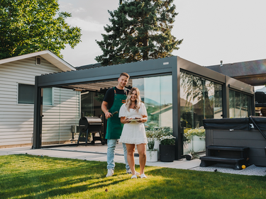 Genieße mit unserer Pergola deinen Außenbereich das ganze Jahr über – bei Regen, Schnee oder Sonne.