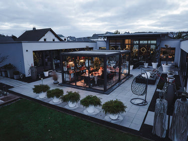 Genieße mit unserer Pergola deinen Außenbereich das ganze Jahr über – bei Regen, Schnee oder Sonne.