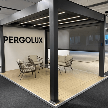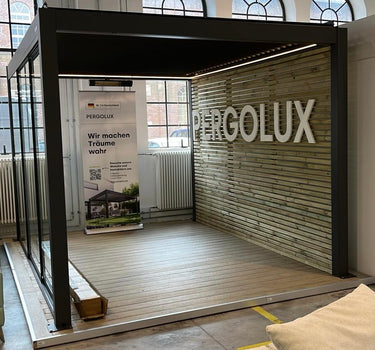 Wir wissen, dass der Kauf einer Pergola eine gut überlegte Anschaffung ist. Genau deswegen laden wir dich herzlich ein, unsere Pergola-Showrooms zu besuchen. Du kannst direkt vor Ort die Vorzüge und den Komfort einer Pergola erleben und einer unserer Experten wird dich dabei umfassend beraten. An unterschiedlichen Standorten in Deutschland präsentieren wir dir eine beeindruckende Auswahl an hochwertigen PERGOLUX Pergolen. In unserem Indoor-Bereich erwartet dich beispielsweise unser beliebtes Pergola Skydance Modell.