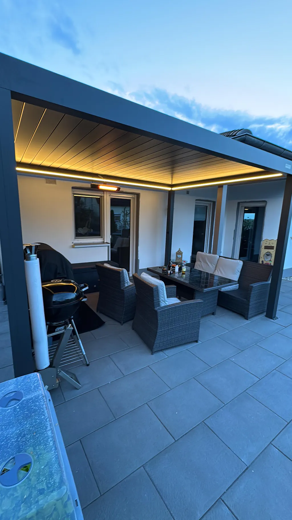 Heute bin ich froh das ich mich dafür entschieden habe. (gekauft PERGOLUX Sundream S3/ Anthrazit / 4x4m / inkl. Screen / Heizung / LED RGB)