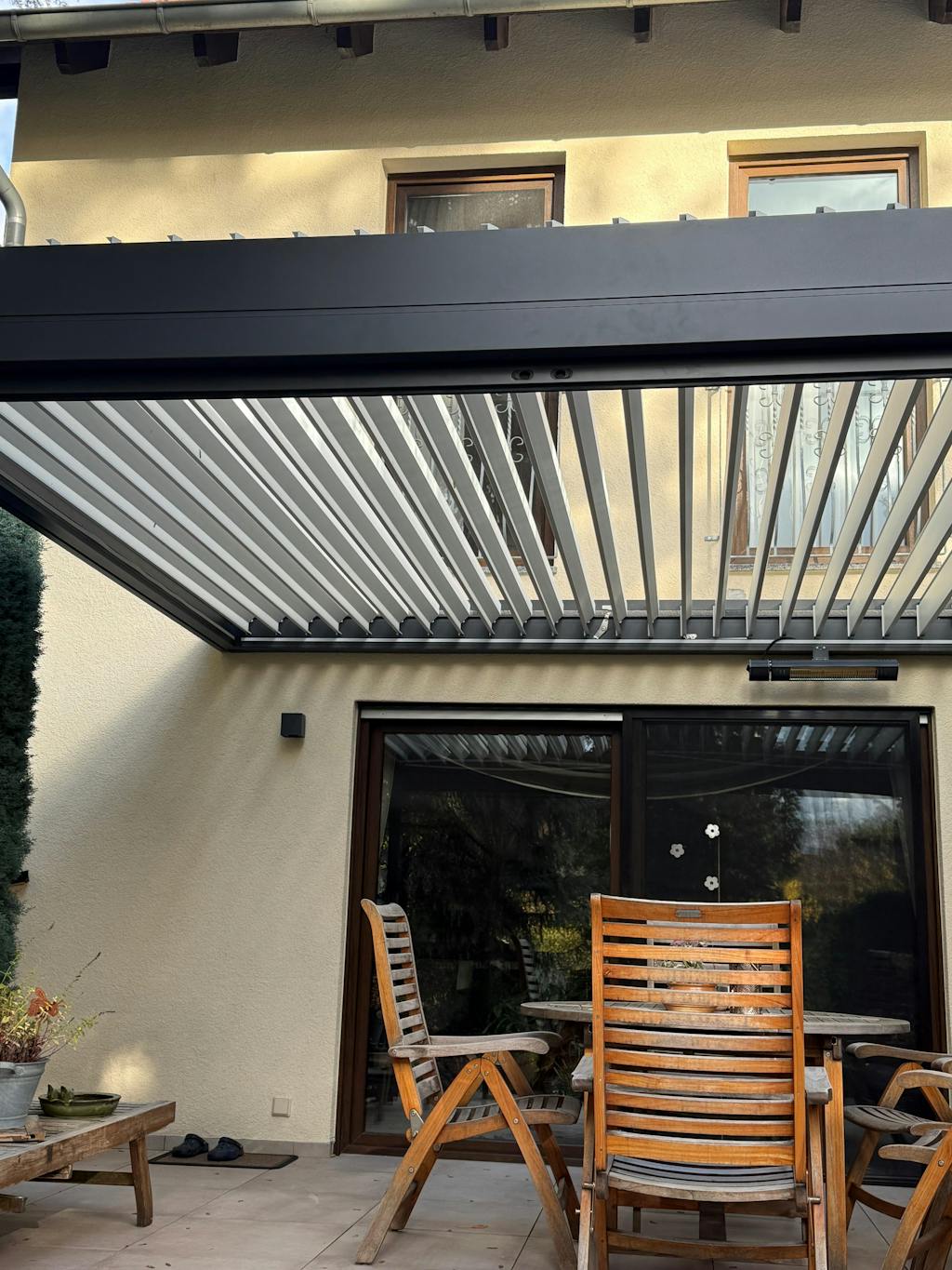 Rüsten Sie Ihre Pergola zusätzlich mit stilvollen LED-Stripes aus, die durch warmweißes dimmbares Licht eine gemütliche Atmosphäre schaffen. So wird Ihre Pergola zu Ihrem ganz persönlichen Wohlfühlort. Für kühlere Tage oder lange Abende ist unsere Wärmelampe die perfekte Ergänzung.