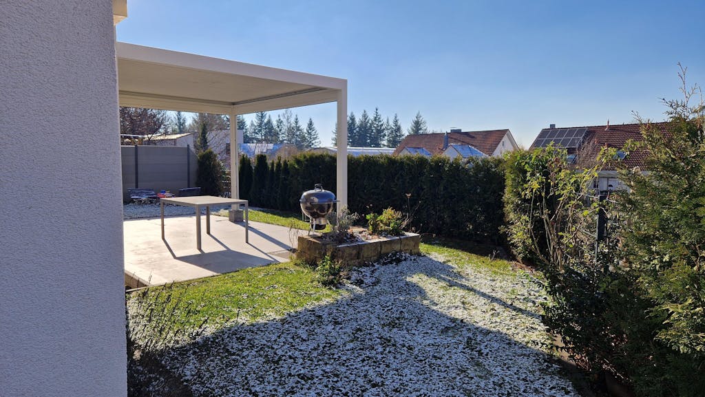 • Weiße Pergola: Für einen nahtlosen, eleganten Look, der sich harmonisch einfügt.